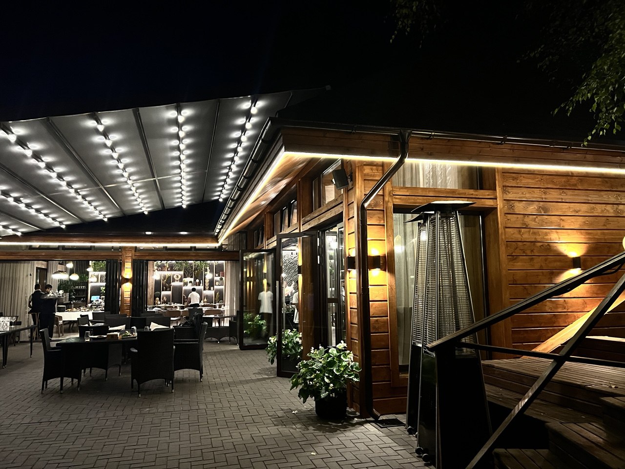 • Задача: создать вечернюю атмосферу премиального отдыха у воды без слепящих бликов, обеспечить скрытый влагозащищенный монтаж и удобное обслуживание, предусмотреть сценарии освещения (будние дни/праздники/ночь).